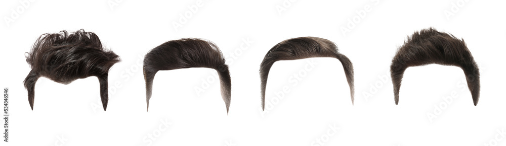 Fashionable men's hairstyles isolated on white, collage. Banner design