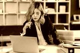 Asian beautiful businesswoman seriously working thinking idea for work on computer and think project for idea sitting work indoor