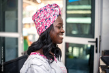 close-up of a beautiful african businesswoman in office, happy.