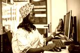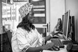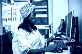 close up of a beautiful african businesswoman working using cellphone and computer.