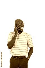 young man talking on mobile phone while smiling.