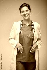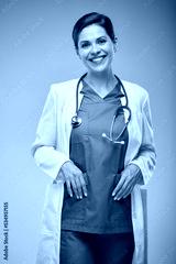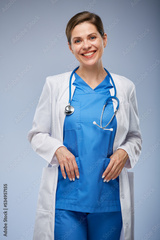 Smiling doctor woman in white coat. Isolated portrait.