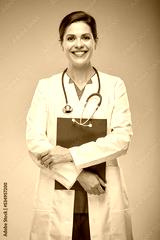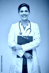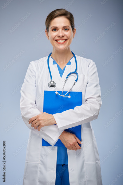 Smiling doctor woman holding clipboard. isolated female portrait.