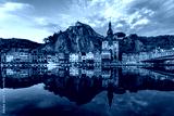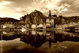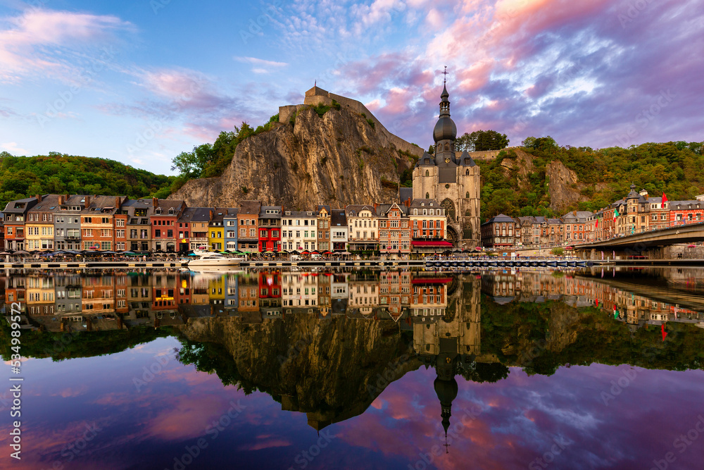 Colorful cityscape of Dinant with sunset at the river Meuse, Belgium