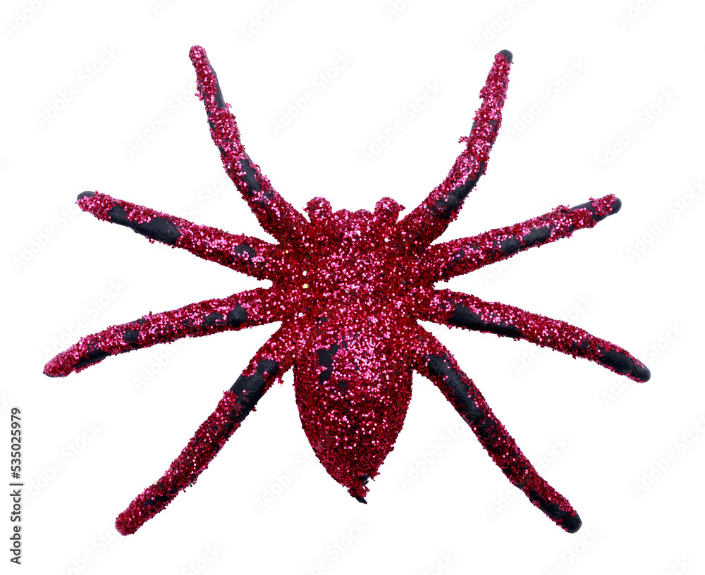 Glitter Burgundy Spider Halloween Decoration Isolated on White Background