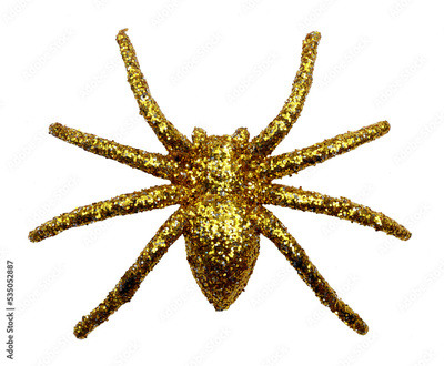 Glitter Yellow Gold Spider Halloween Decoration Isolated on White Background