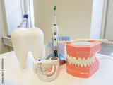 dentist office. orthodontic model and dentist tool - demonstration teeth model of varities of orthodontic bracket or brace,Electric toothbrush