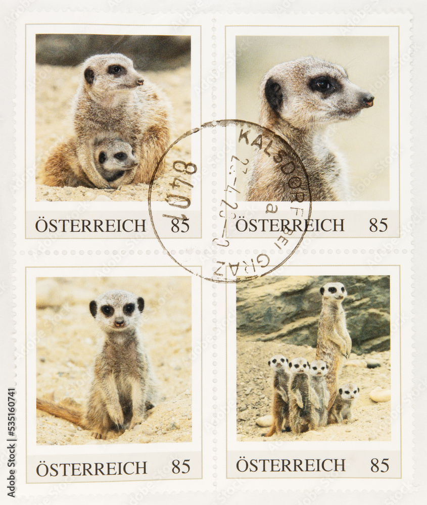 briefmarke stamp used gestempelt used frankiert cancel papier paper post tiere animal österreich austria kalsdorf bei garz erdmännchen kinder familie meerkat 85