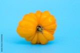 Ugly vegetables concept. Tomatoes of various unusual shapes on a blue minimal background. A metaphor for imperfection, the female body, the art of photography and form.