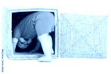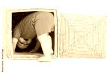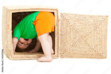 little boy inside a box on a white background