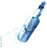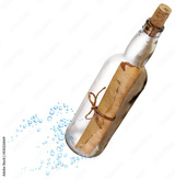 Message in the bottle floating with bubbles, appeal for help, partial transparency
