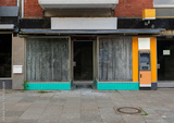 closed shop, locked store front, many shops remain empty due to the coronavirus pandemic and the subsequent economic downturn.