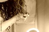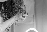 Woman scrunching her hair to form curls. Applying curly method for hair styling. Close-up on the hands