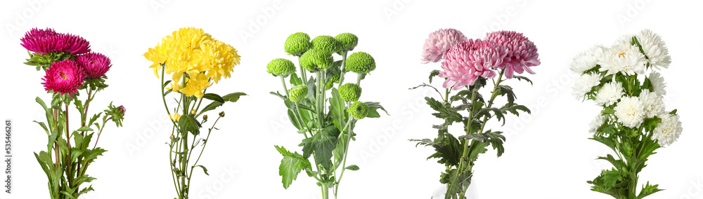 Set of beautiful chrysanthemum flowers isolated on white
