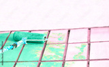 Roller painting pale pink wall surface with green emerald paint
