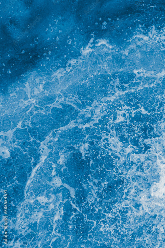 Dark blue sea surface with waves, splash