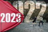 Two business people pulling numbers 2023