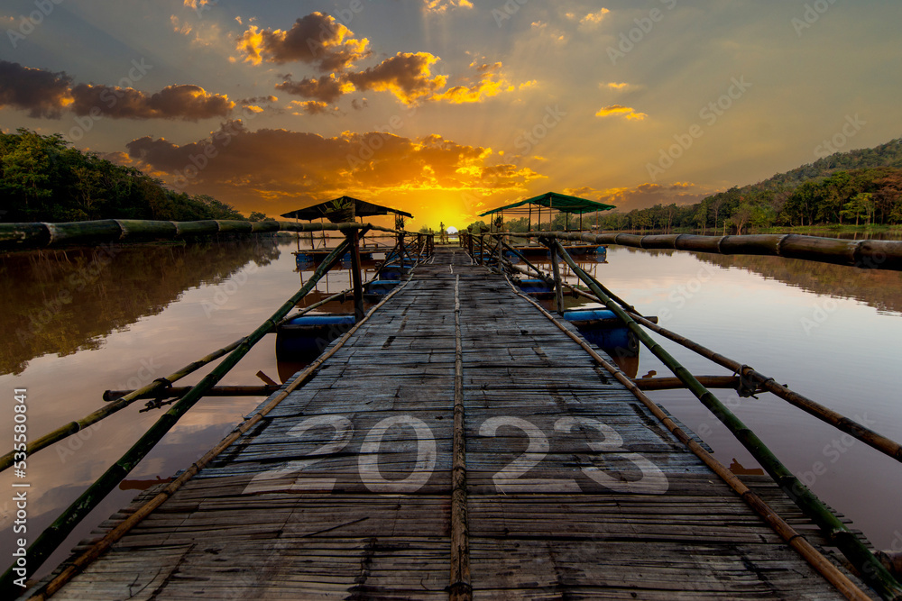 The scenery of the bamboo bridge number 2023 welcomes the dawn.