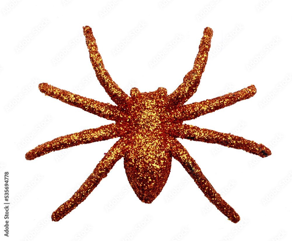 Glitter Gold Spider Halloween Decoration Isolated on White Background
