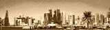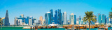 City of Doha panorama with skyscrapers of West Bay downtown district, gulf and Al Corniche road traffic. Doha, Qatar