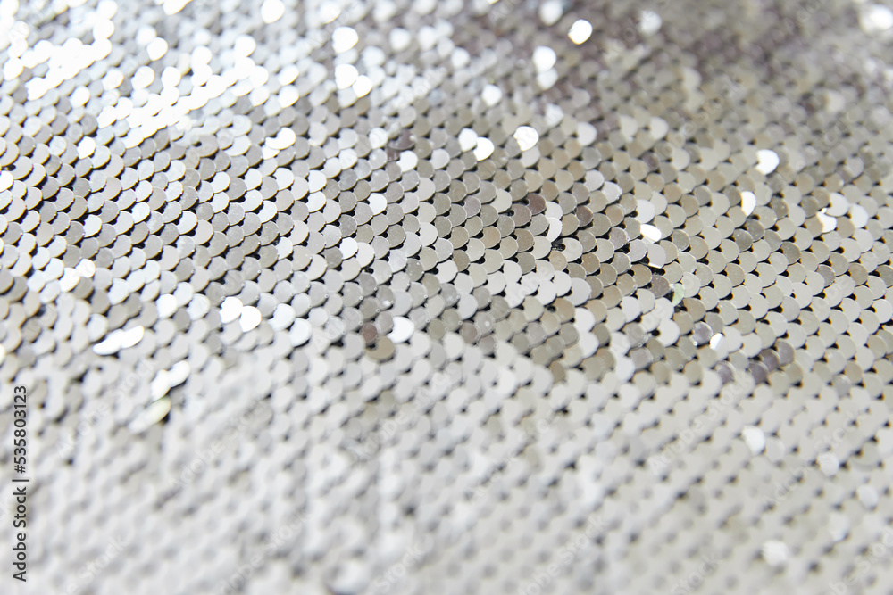 fabric is covered with silver sequins. Abstract background and backdrop. Antistress
