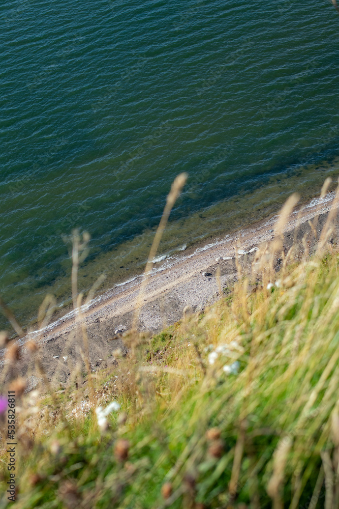 Looking down a steep cliff