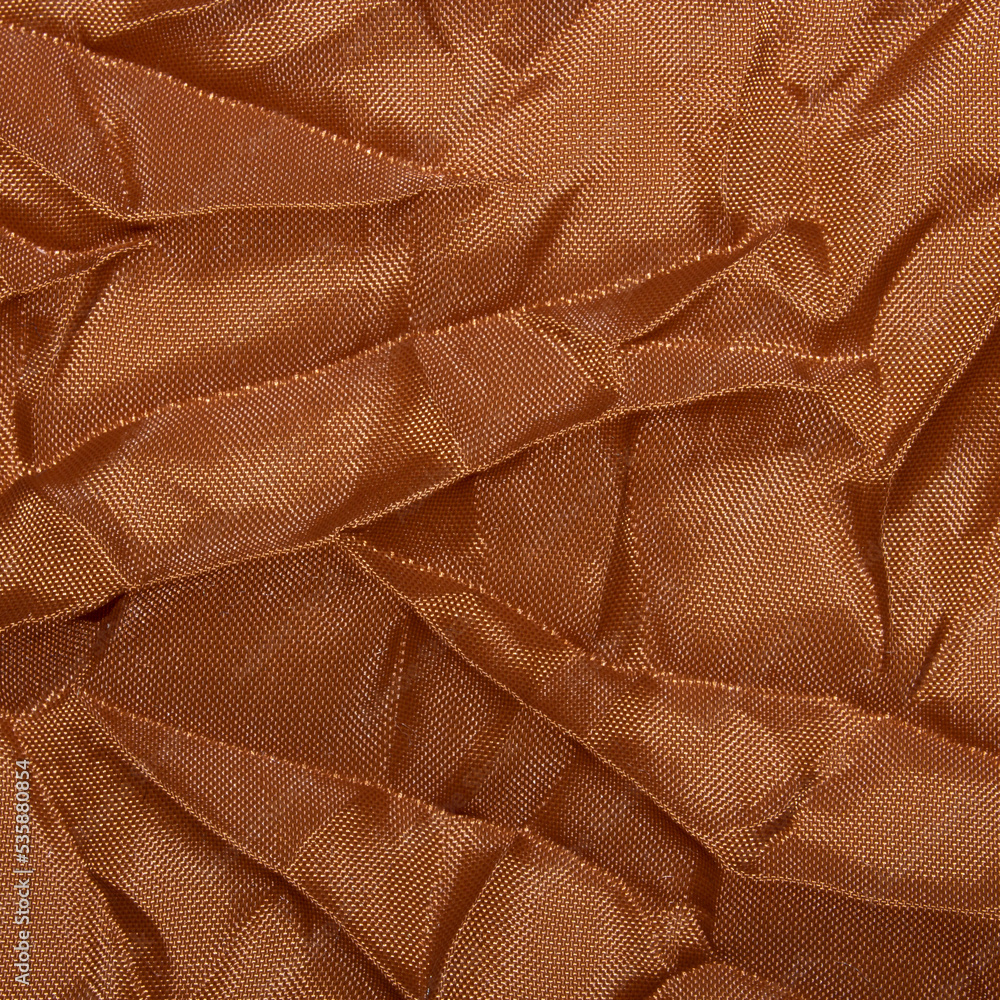 Brown bolognese crumpled fabric.The background of the Bolognese fabric.Brown twill fabric.The fabric is dense with folds.