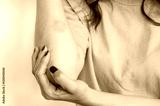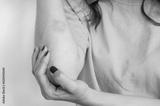 Cropped shot of woman showing bruise occur on her skin. A bruise is a common skin injury that results in a discoloration of the skin.
