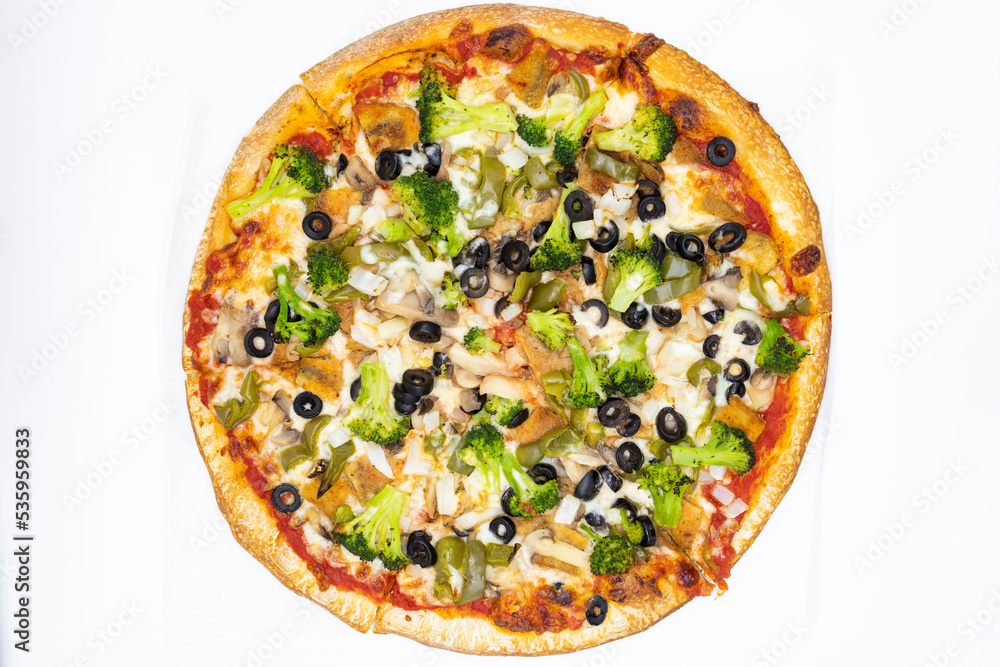 New York Style Vegetable Pizza with Broccoli Olives and Mushrooms