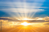 Sunset sky with sun rays and sunset clouds