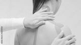 Therapist is applying tape to female body. Physiotherapy, kinesiology and recovery treatment.