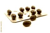 Medical pills capsules of brown color on a white background. Medicinal preparations of plant origin in the form of capsules isolate
