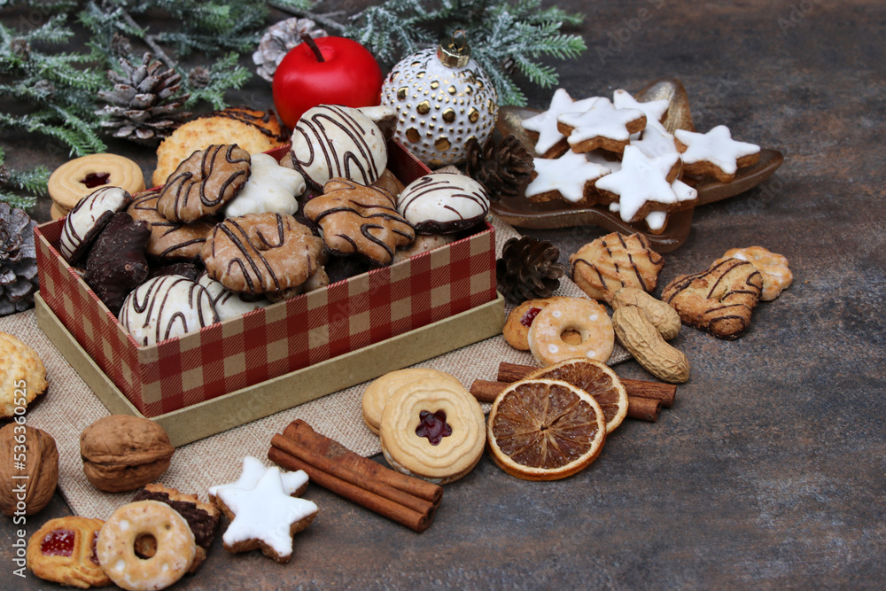 Eine Aswahl an Weihnachtsgebäck auf einem Tisch.