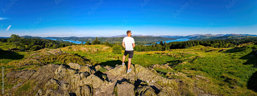 Aerial view of Windermere in Lake District, a region and national park in Cumbria in northwest England