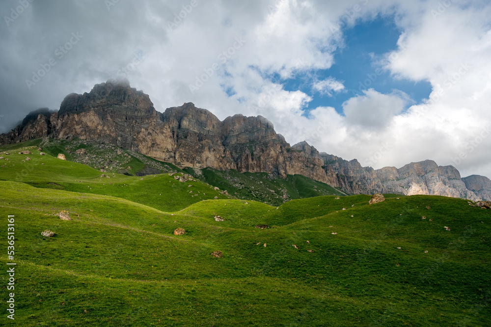 Beautiful summer landscape of green meadow in mountains