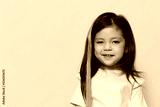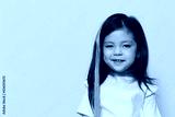 pleasant, sweet, joyful girl with a false strand of pink color in her hair smiling looking at the camera