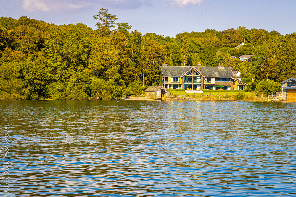 Wendermere lake near Bowness-on-Windermere in Lake District, a region and national park in Cumbria in northwest England
