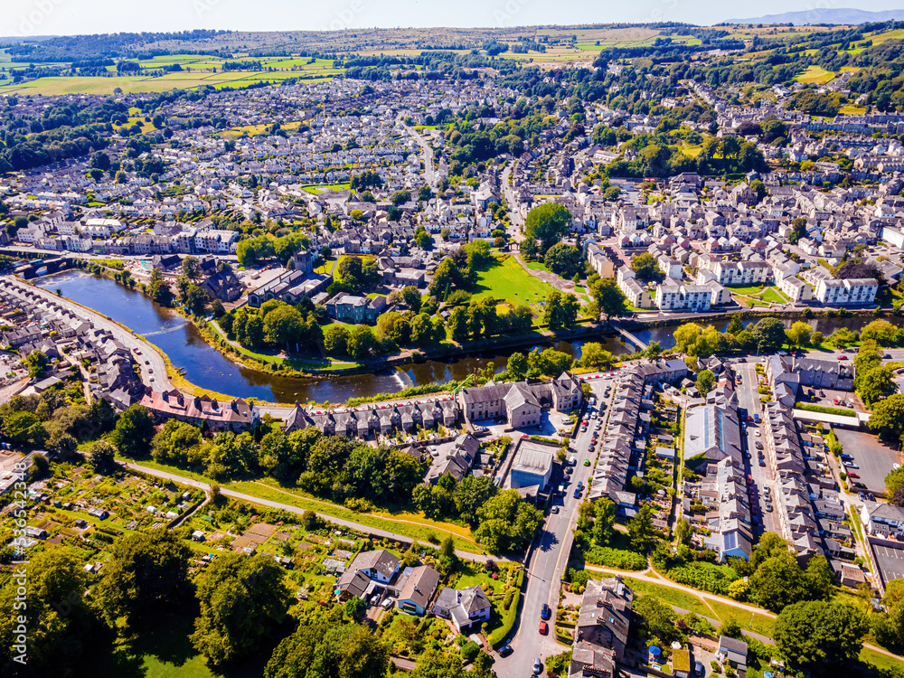 Aerial view of Kendal in Lake District, a region and national park in Cumbria in northwest England