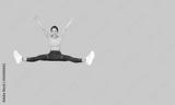 Full length body size Cheerful woman jumping to the air hands raised wearing sportswear with excited jump on pink background and copy space Health care Healthy Lifestyle Exercise and Workout concept
