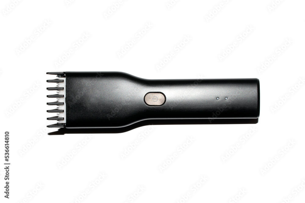 Electric hair clipper on a white background.The clipper is wireless.The clipper is rechargeable.