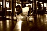 Sporty african man doing push-up in a gym.