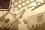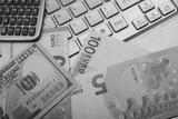 Euro banknotes, calculator and Economy, trading, Business company concept.
