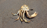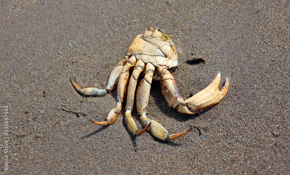 Crab carcass on beautiful sand of the Shediac sea shore New Brunswick