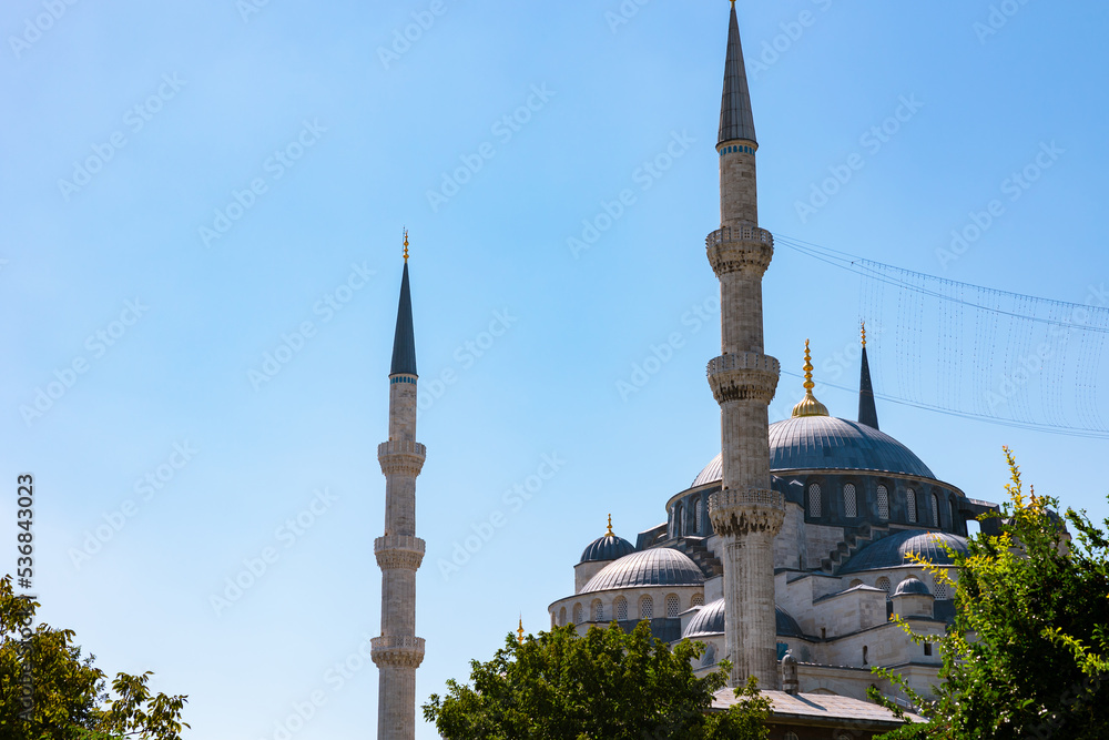 Islamic background. Minarets and dome of Sultanahmet Mosque aka Blue Mosque