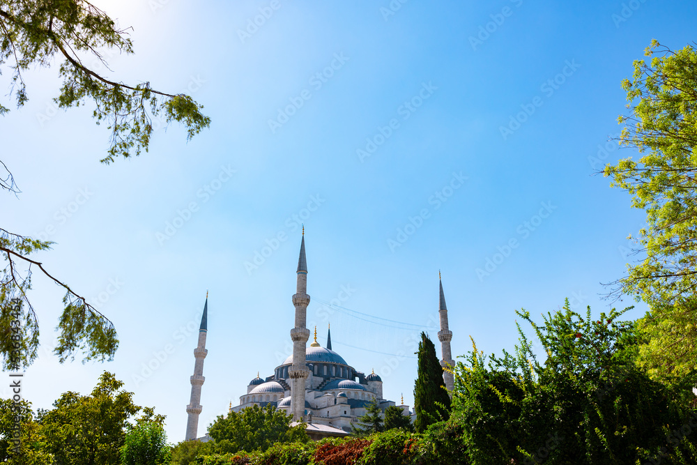 Islamic background photo with copy space. Blue Mosque or Sultanahmet Mosque