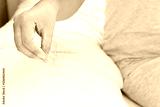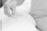 closeup hand holding hair loss fallen on pillow