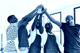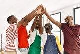 Group of young african american artist man smiling happy with hands united at art studio.