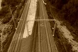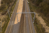 Drone view of train track parallel each one.