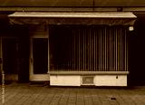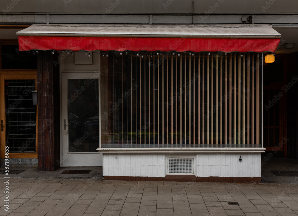 closed and abandoned italian restaurant in the urban city, no more outdoor catering, impact of the corona pandemic.