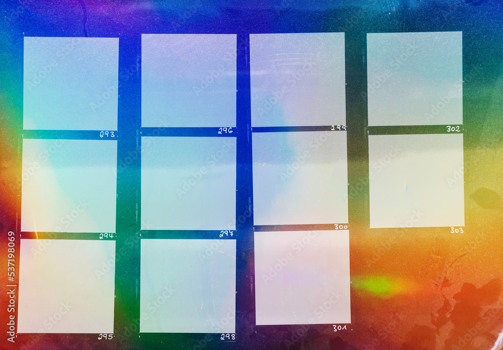 bad scan of black and white hand copy contact sheet with 11 empty film frames.